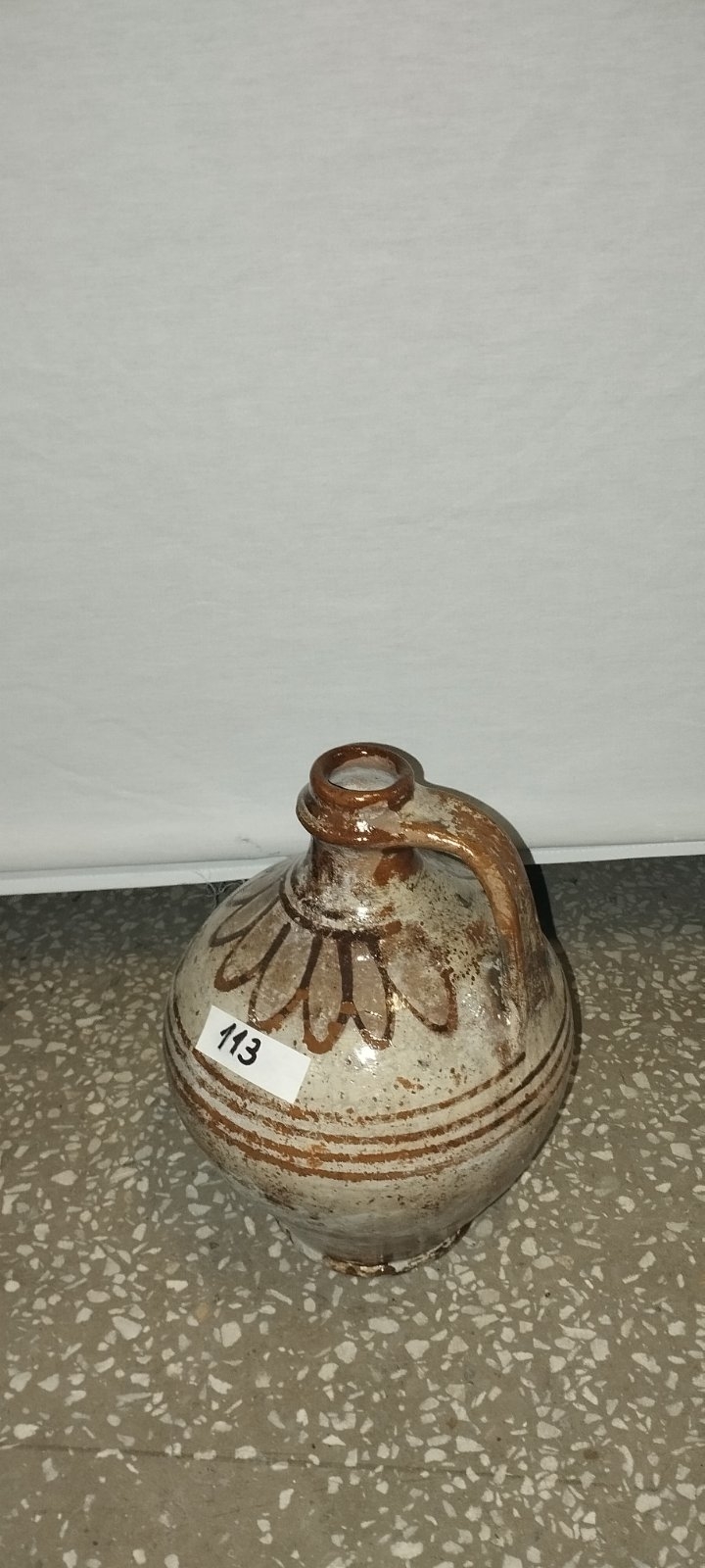 Vas din lut confecționat pe roata olarului ,corp sferic cu gîtul îngustat. Gama cromatică- alb,cafeniu ,vasul este smalțuit. Acest ulcior iera folosit în gospodărie pentru păstrarea lichidelor.