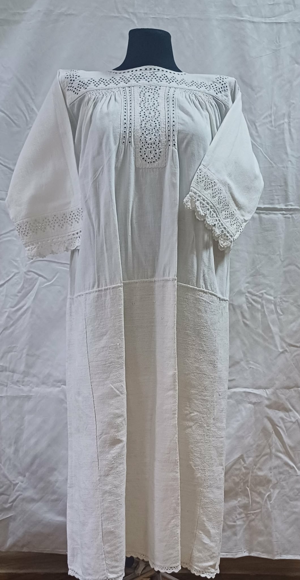 Cămașă de sărbătoare cu platcă, confecționată în condiții casnice și poalele din pânză de cânepă.