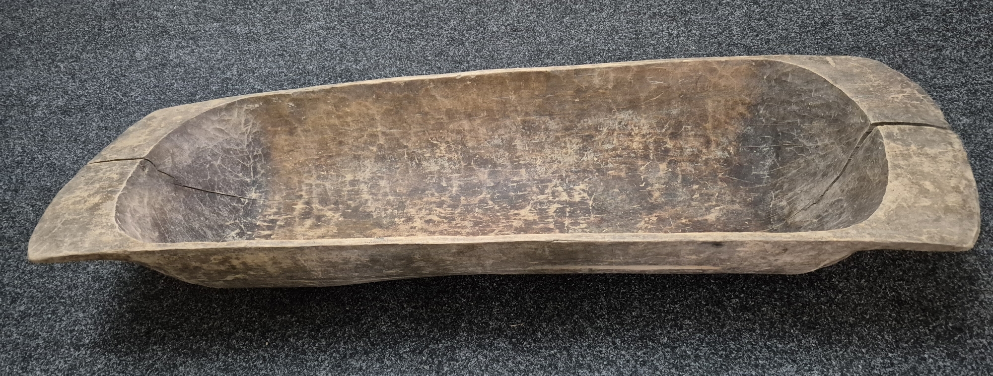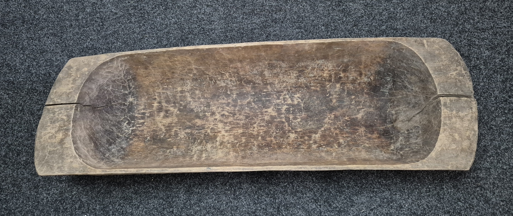 Vas tradițional, scobit dintr-o bucată de lemn.