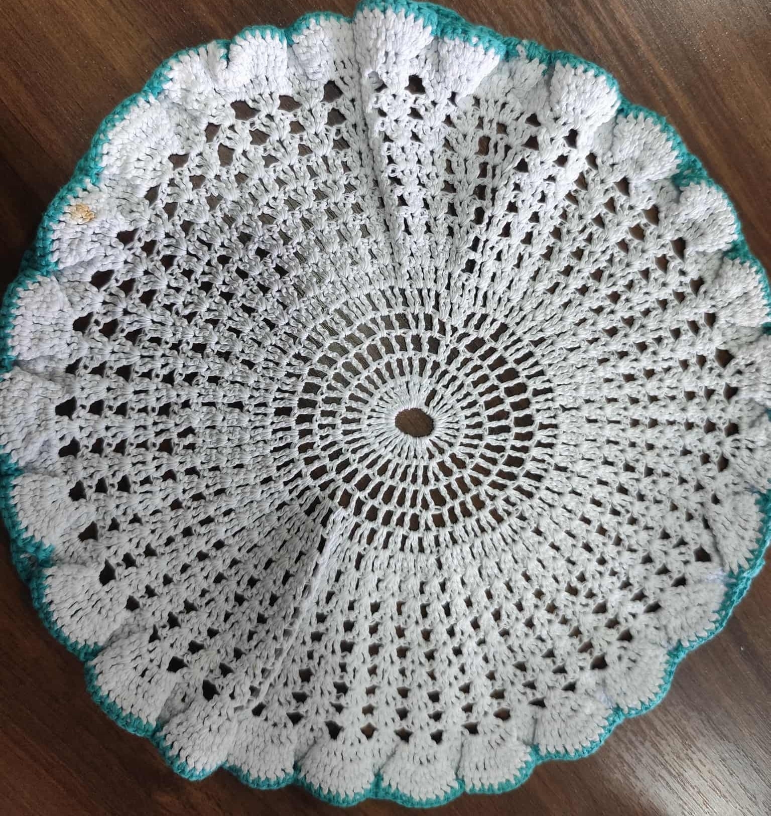 Obiect textil de formă rotundă, având rol decorativ, fiind așezat pe mese, noptiere, etajere, sub vaze, icoane sau alte obiecte de interior, contribuind la estetica și îngrijirea casei. Centrul circular este perforat format din cercuri concetrice realizate cu piciorușe duble și spații între ele, care oferă un aspect aerisit. Modelul este împărțit în felii egale, fiecare conținând grupuri de ochiuri care creează un efect de evantai. Margine decorativă- terminată cu scoici albe accentuate cu un fir verde-turcoaz, ceea ce oferă contrast și eleganță.