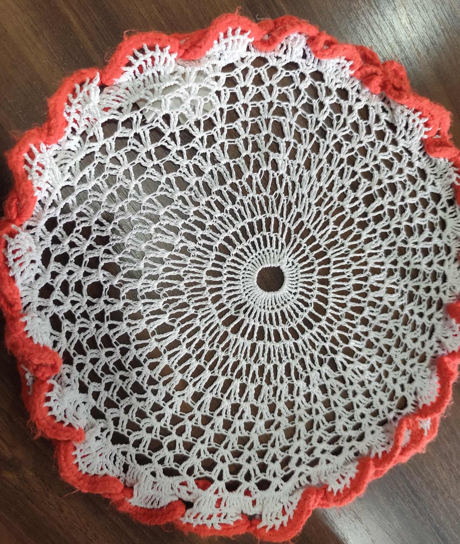 Obiect textil de formă rotundă, având rol decorativ, fiind așezat pe mese, noptiere, etajere, sub vaze, icoane sau alte obiecte de interior, contribuind la estetica și îngrijirea casei. Centrul circular este perforat format din cercuri concetrice realizate cu piciorușe duble și spații între ele, care oferă un aspect aerisit. Modelul este împărțit în felii egale, fiecare conținând grupuri de ochiuri care creează un efect de evantai. Margine decorativă- terminată cu scoici albe accentuate cu un fir oranj, ceea ce oferă contrast și eleganță.