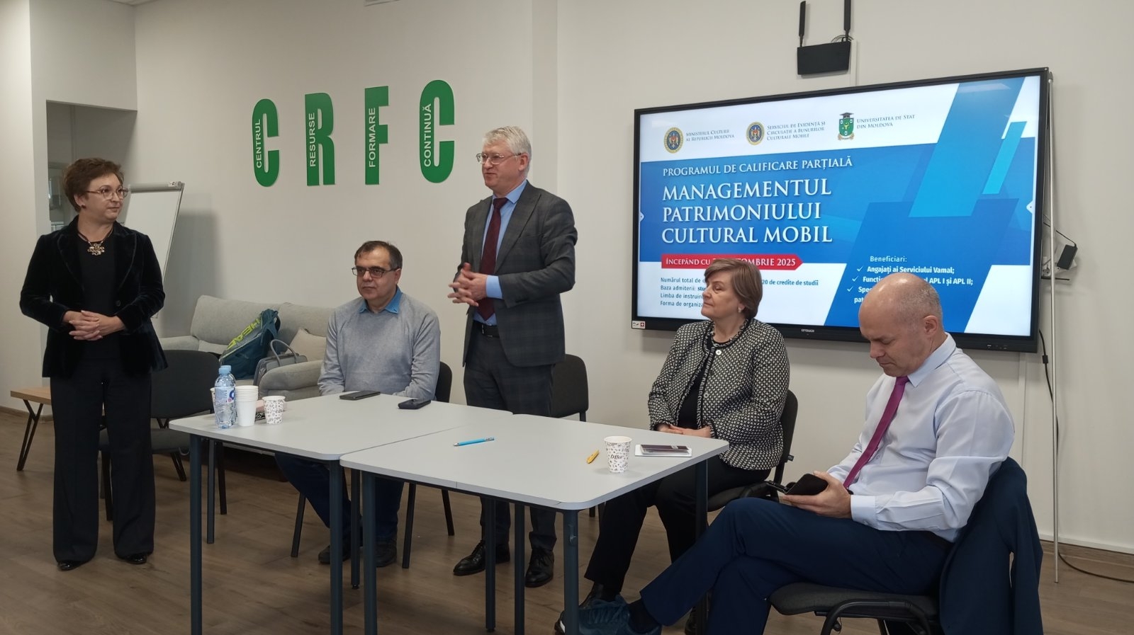 Astăzi, 20 octombrie 2025, la Centrul de Resurse pentru Formare Continuă al Universității de Stat din Moldova, a avut loc evenimentul de deschidere a celei de-a doua ediții a Programului de Microcalificare în Managementul Patrimoniului Cultural Mobil (MPCM) — un program inovator inițiat de Serviciul de Evidență și Circulație a Bunurilor Culturale Mobile (SECBCM), în parteneriat cu Universitatea de Stat din Moldova și Ministerul Culturii al Republicii Moldova. Programul urmărește dezvoltarea competențelor profesionale necesare pentru prevenirea traficului ilicit de bunuri culturale și pentru gestionarea, protejarea și valorificarea patrimoniului cultural mobil.