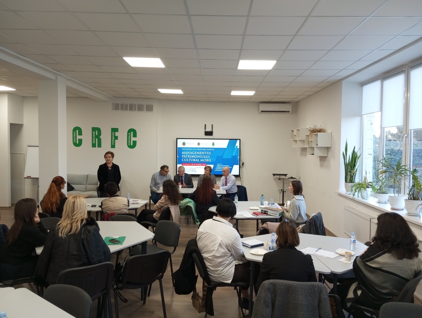 Domnul dr. Sergiu Matveev, profesor universitar și expert în bunuri culturale mobile, a menționat importanța interdisciplinarității și a colaborării între specialiști din diverse domenii, evidențiind structura celor trei module ale programului: cadrul normativ, domeniile patrimoniului și evidența bunurilor culturale mobile.