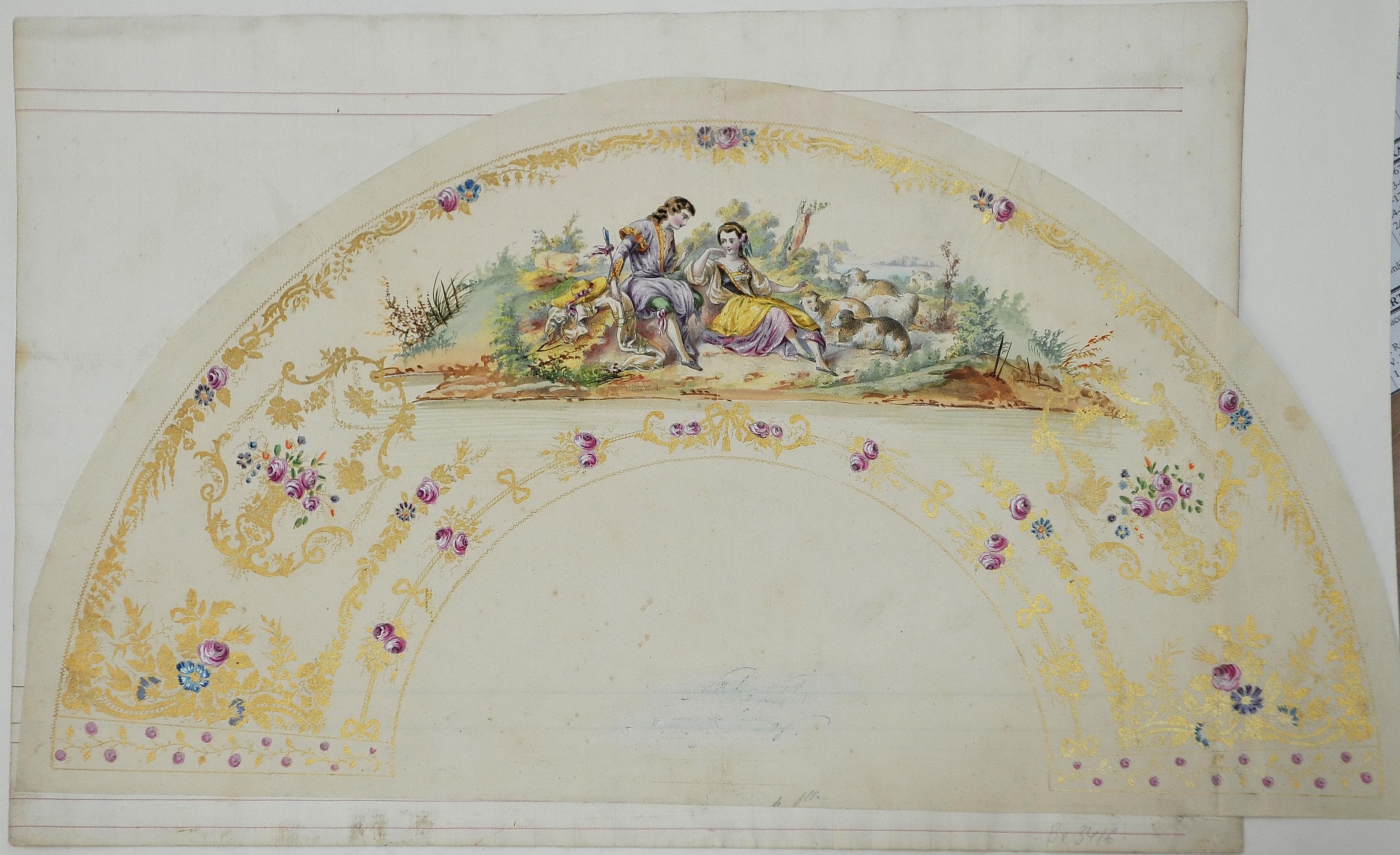 Centru, sus - o scenă pastorală în peisaj (un bărbat şi o femeie aşezaţi, în drp ei - 4 oiţe). Restul spaţiului e completat cu decor floral. Realizat în auriu, nuanţe de mov, galben, verde, albastru.