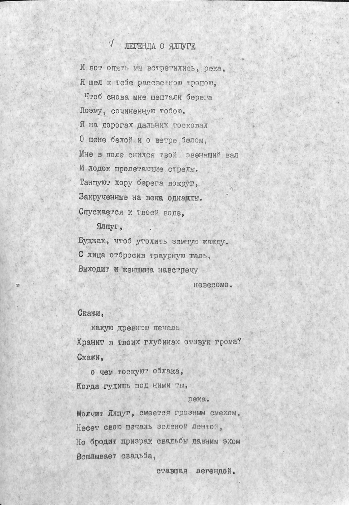 Boțu, Pavel. Manuscris dactilografiat. „ЛЕГЕНДА О ЯЛПУГЕ” este tradusă în limba rusă de Rudolf Olișevskii. Legenda este inserată pe cinci pagini și este dactilografiată în limba rusă. În partea inferioară a paginii este dactilografiat: „1962 Перевод Р. Ольшевского”.