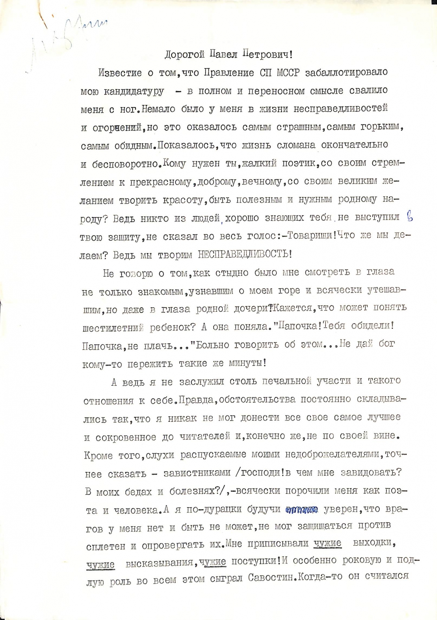 Boțu, Pavel. Manuscris dactilografiat. Scrisoare adresată lui Pavel Boțu la data de 26 februarie 1977. Text dactilografiat în limba rusă cu completări și corectări scrise olograf cu stilou în culoare albastră. Scrisoarea este semnată olograf ilizibil cu stilou în culoare albastră și datată cu 26 februarie 1977. 3 p.
