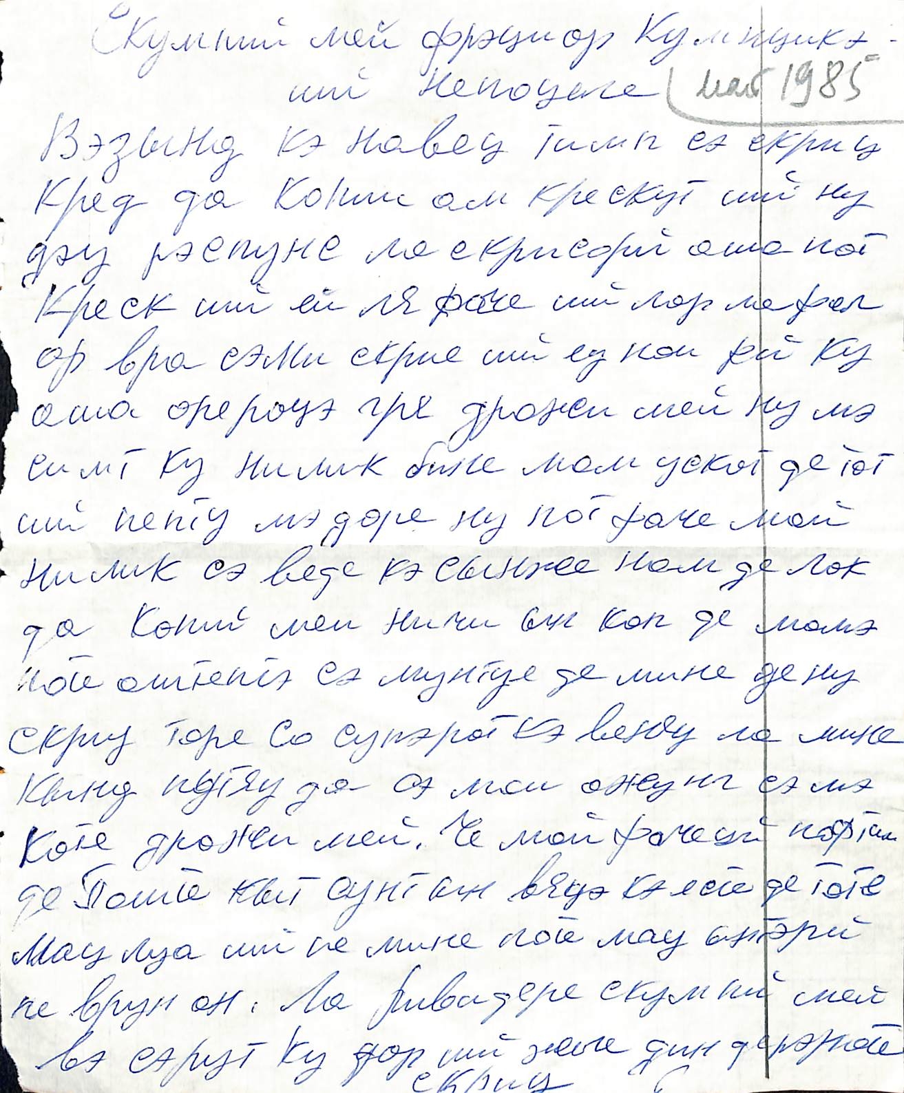 Boțu, Pavel. Manuscris olograf. Scrisoare anonimă, fără plic adresată lui Pavel Boțu. Textul este scris olograf în limba română cu caractere chirilice cu stilou în culoare albastră. Fără datare. 1 p. L: 20 cm.; LĂ: 16,5 cm.