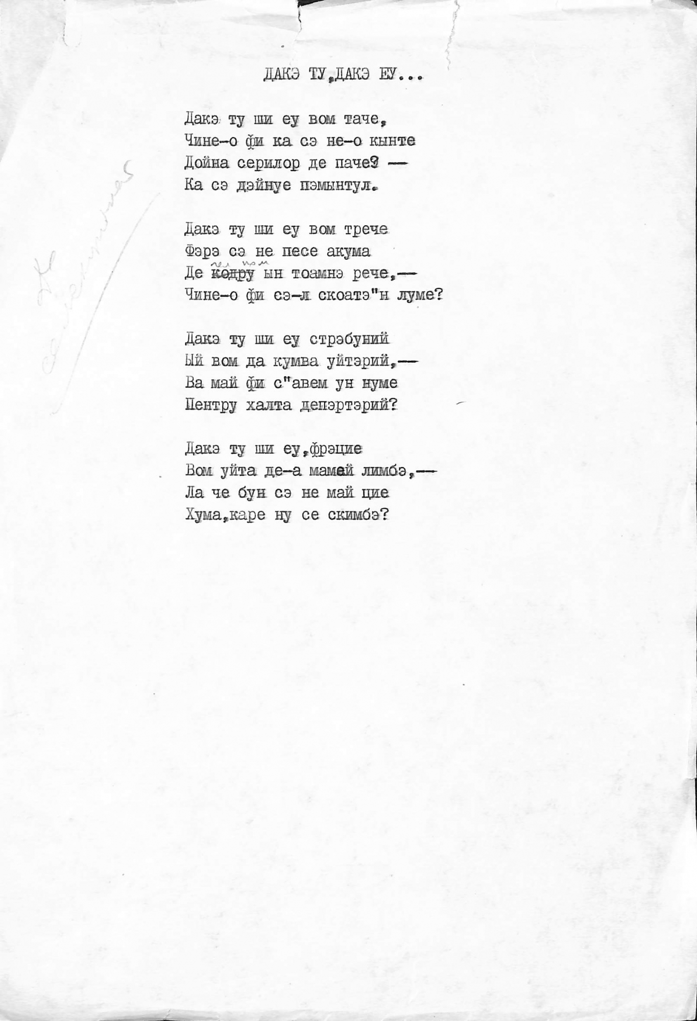 Manuscris dactilografiat. Poezia „Dacă tu, dacă eu...”