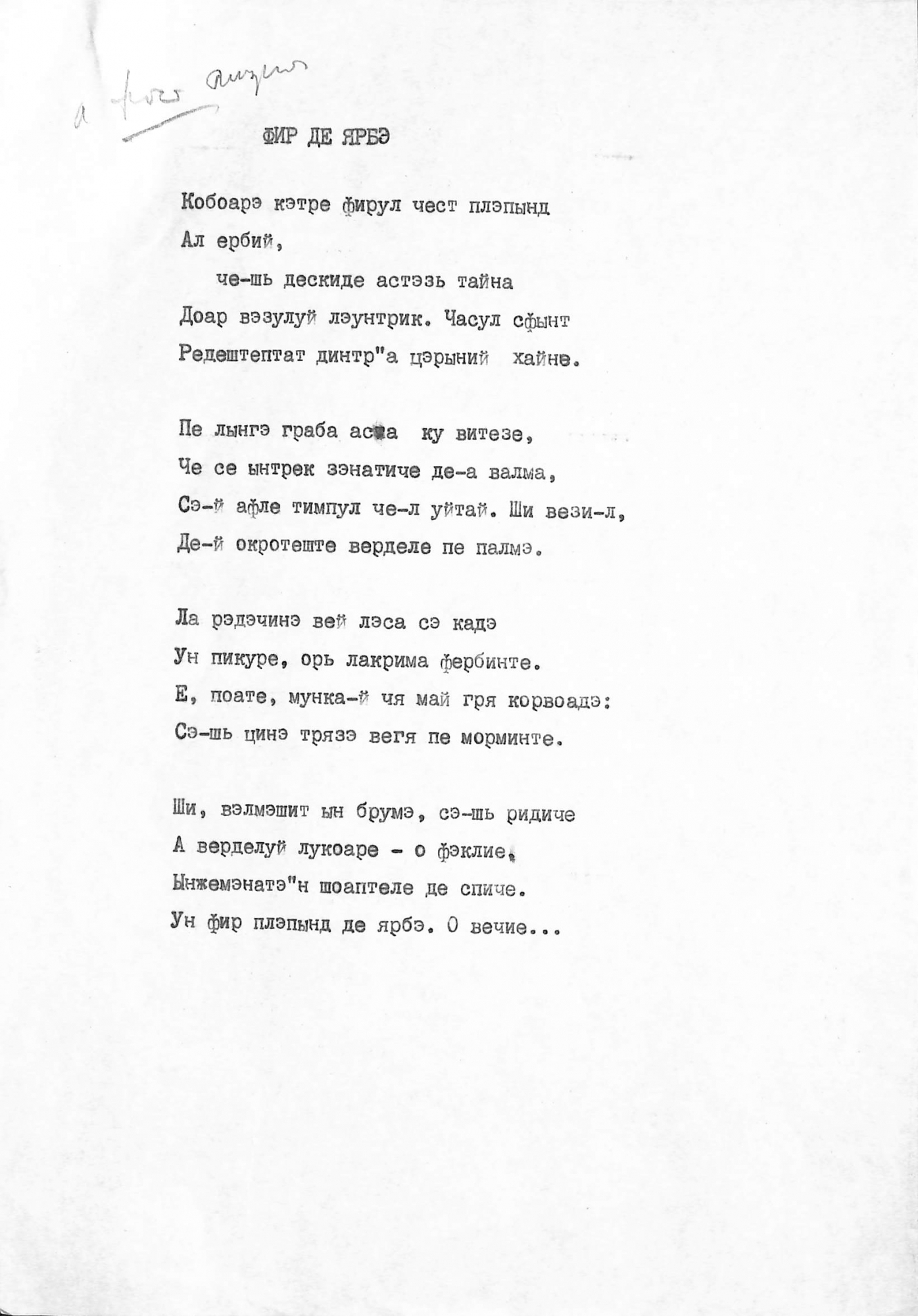 Manuscris dactilografiat. Poezia „Fir de iarbă”