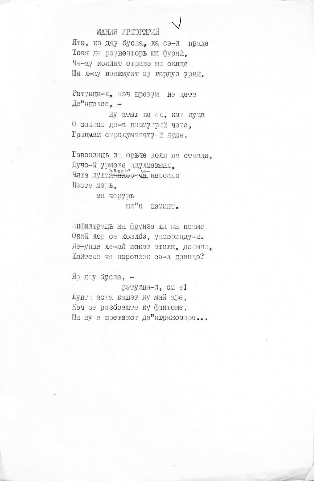 Manuscris dactilografiat. Poezia „Mania urmăririi”
