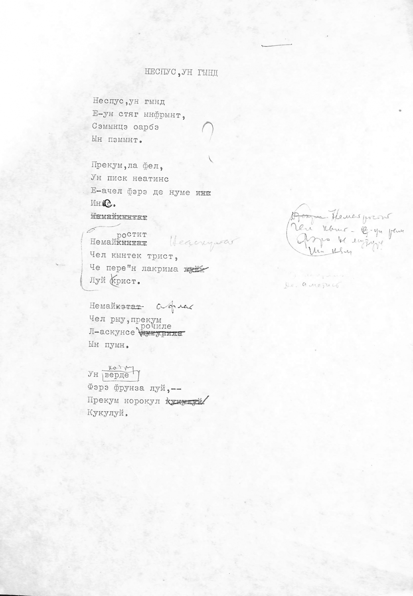 Manuscris dactilografiat. Poezia „Nespus, un gând”