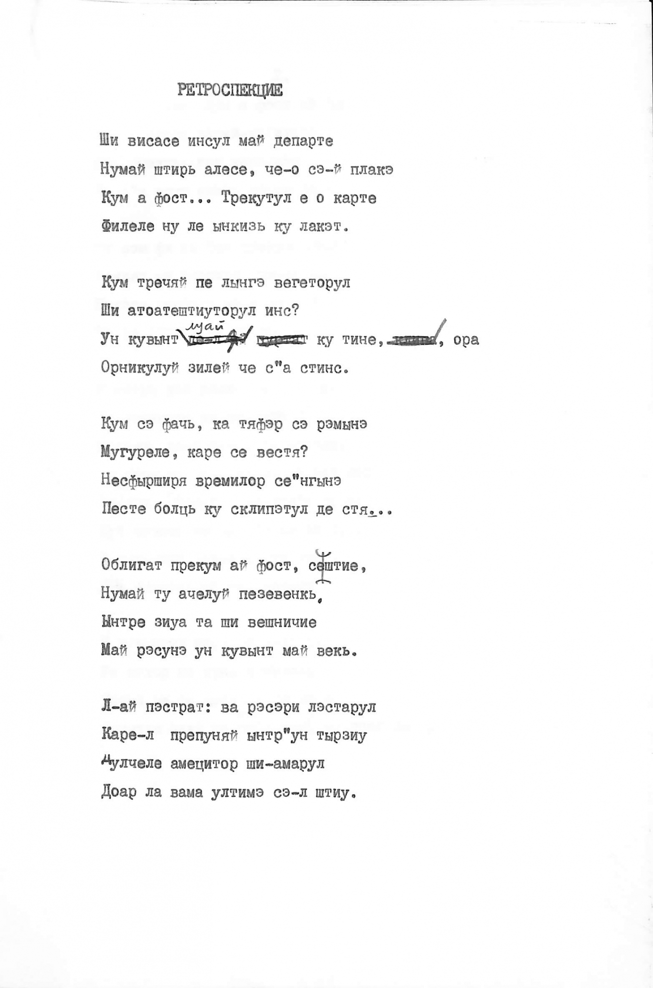 Manuscris dactilografiat. Poezia „Retrospecție”
