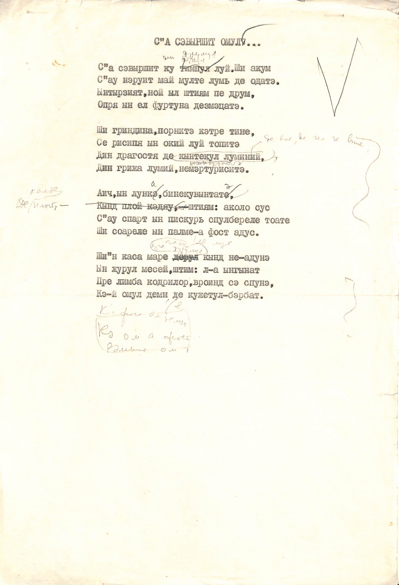 Manuscris dactilografiat. Poezia „S-a săvârșit omul...”