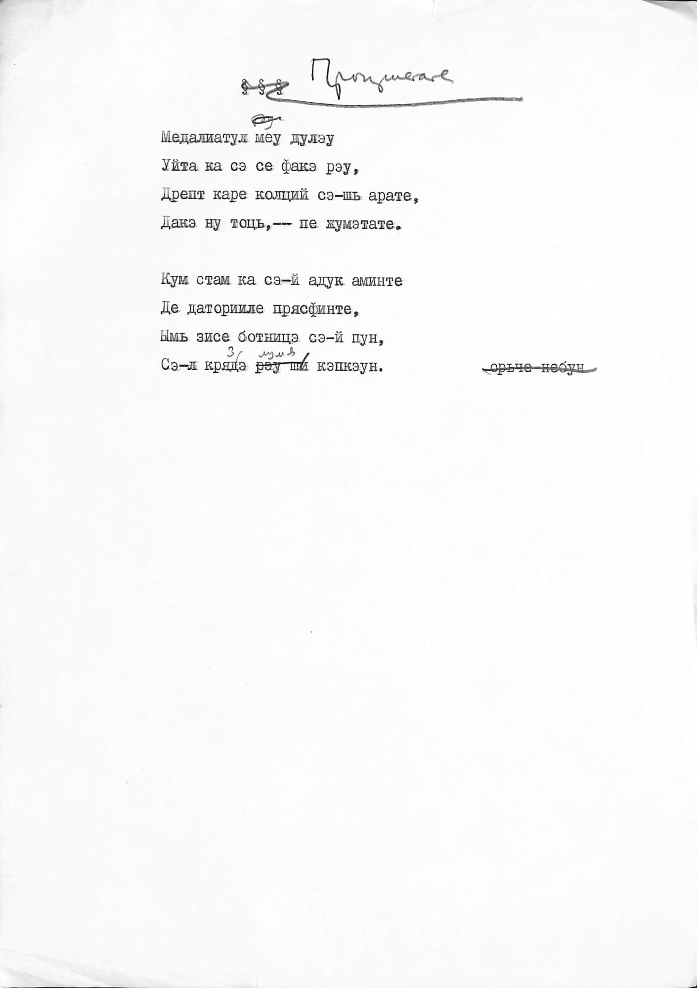 Manuscris dactilografiat. Poezie fără titlu