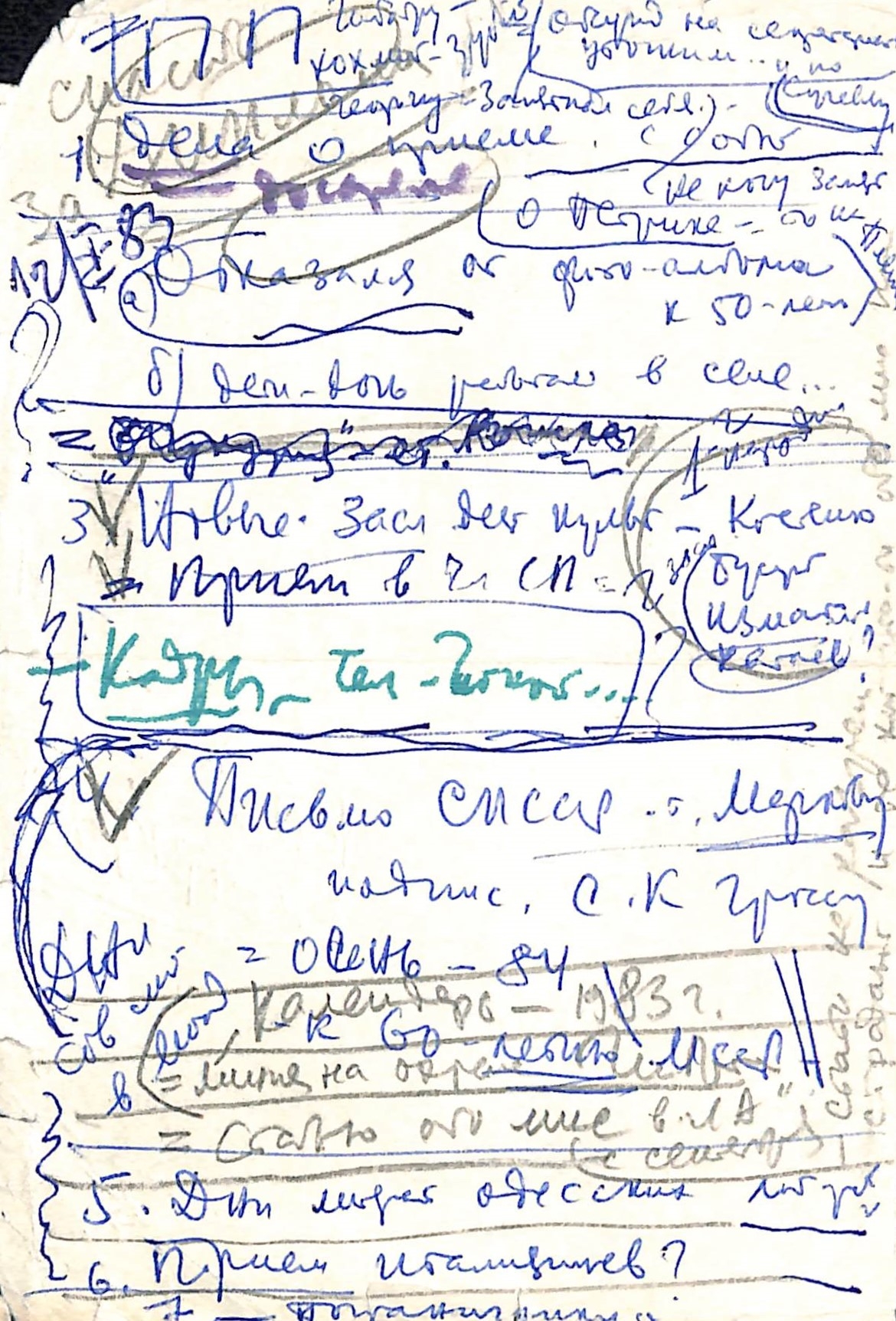 Boțu, Pavel. Manuscris olograf. Manuscrisul cuprinde notițe varia scrise olograf pe o pagină de carnet. Sus colț stânga este scrisă data de: „12/ I. 1983”. Manuscrisul olograf este scris în limba rusă și în limba română cu caractere chirilice cu stilou în culorile albastru, verde, și creion în culoare neagră.