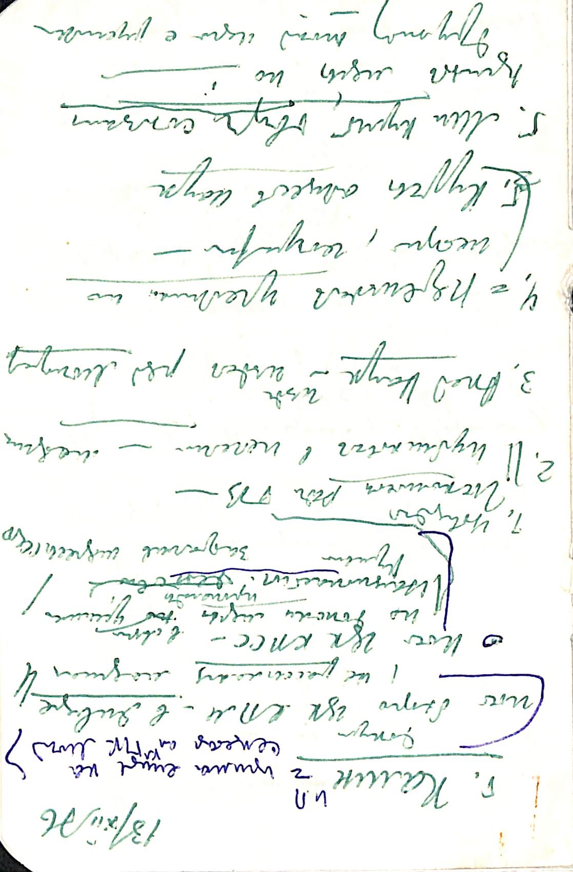 Boțu, Pavel. Manuscris olograf. Note, indicații, însemnări cu privire la realizarea hotărârii CC al PC al URSS – dispuse spre realizare la ședința biroului CC al PCM, la care a participat Pavel Boțu. Manuscrisul olograf este inserat pe pagini de carnet în pătrățele, scris în limba rusă cu stilou în culoare verde și completat cu stilou în culoare albastră. Pe prima pagină sus colț dreapta este scrisă data: „13/ XII 76”, iar pe pagina a unsprezecea este semnătura olograf a scriitorului Pavel Boțu. 13 pagini scrise, 1 filă nescrisă.