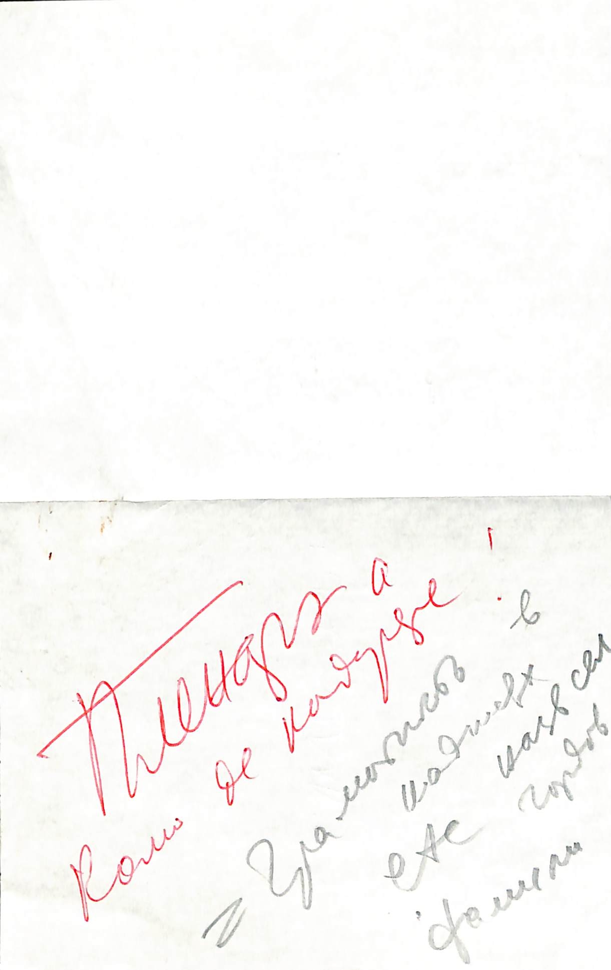 Boțu, Pavel. Manuscris olograf. Notițe varia, însemnări de lucru scrise olograf pe o pagină de carnet. Manuscrisul olograf este scris în limba română cu caractere chirilice și în limba rusă cu stilou în culoare roșie și creion simplu în culoare neagră. Sus la mijloc este scris: „Plenară a Com. de ...” scris ilizibil. Pe verso: fără informații. Fără datare.