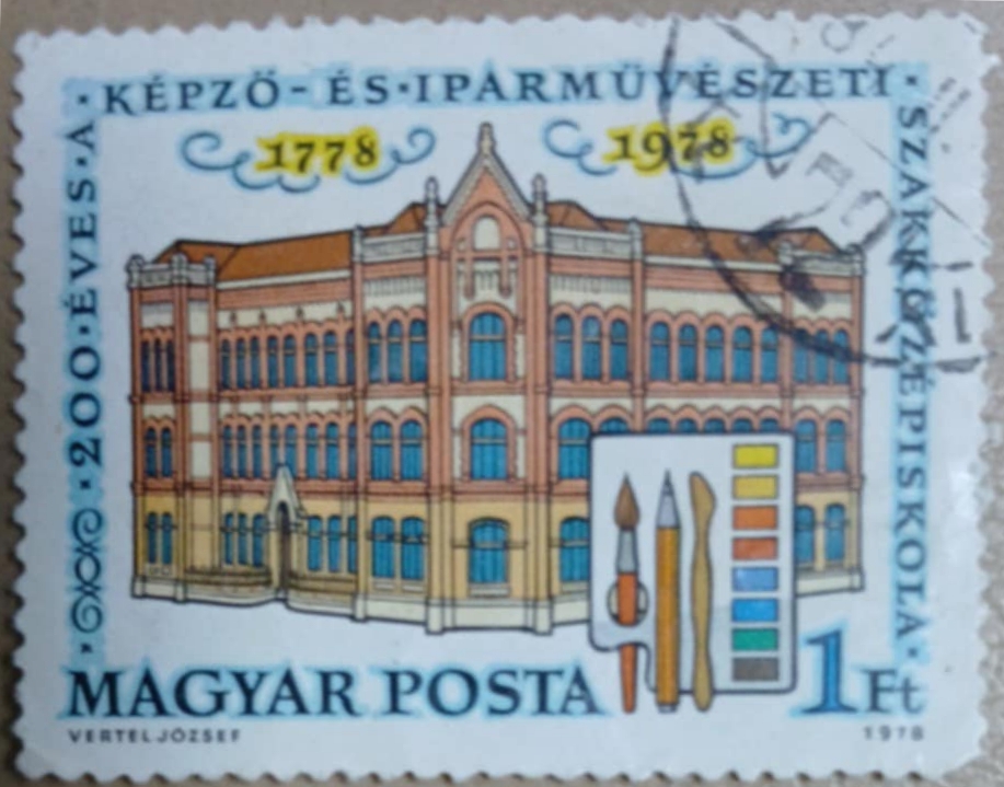 Timbrul comemorează 200 de ani de la înființarea unei instituții de învățământ artistic importante din Ungaria, reflectând importanța educației artistice în cultura maghiară.