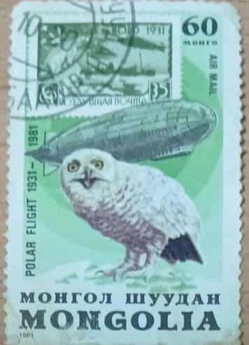 Timbru poștal aerian emis de Mongolia în 1981, cu valoarea de 60 Mongo, dedicat aniversării a 50 de ani de la Zborul Polar din 1931 realizat de dirijabilul german Graf Zeppelin. Ilustrează o bufniță polară, dirijabilul LZ 127 și o reproducere a unui timbru sovietic din 1931. Parte dintr-o serie tematică ce combină aviația istorică și fauna arctică.