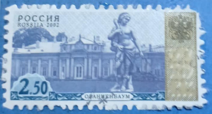 Timbrul reprezintă Palatul Oranienbaum din Rusia, alături de o statuie clasică, simbolizând patrimoniul cultural și istoric rus. A fost emis în 2002, având valoarea nominală de 2,50 ruble.