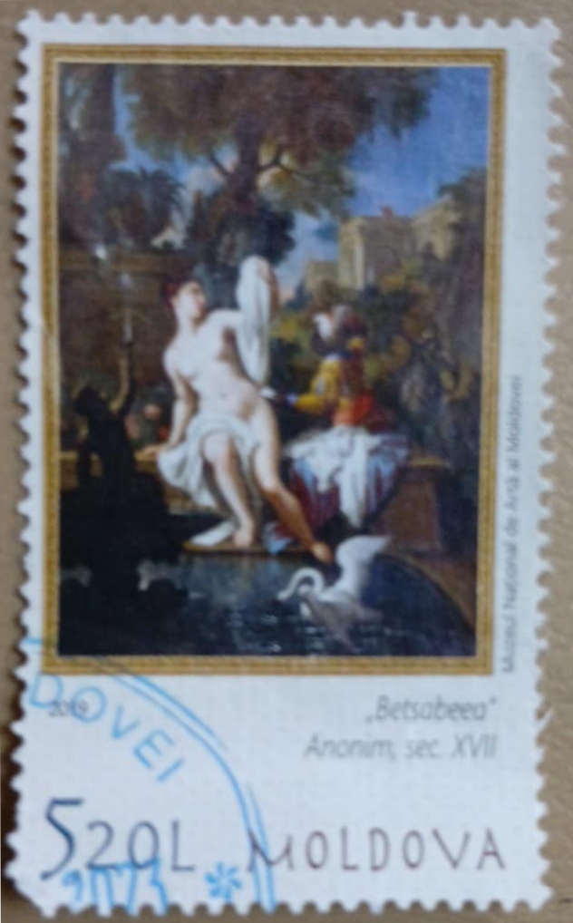 Timbru poștal emis de Republica Moldova, cu valoarea de 5,20 lei, ilustrând pictura „Betsabea”, operă anonimă din secolul al XVII-lea, aflată în colecția Muzeului Național de Artă al Moldovei. Emis în cadrul unei serii dedicate capodoperelor artistice, timbrul reflectă patrimoniul cultural și artistic al țării.