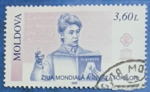 Timbru emis de Republica Moldova în anul 2000, cu valoarea nominală de 3,60 lei, dedicat Zilei Mondiale a Învățătorilor. Reprezintă simbolic figura unui cadru didactic ținând o carte și un instrument de scris, în semn de omagiu adus profesiei de învățător.