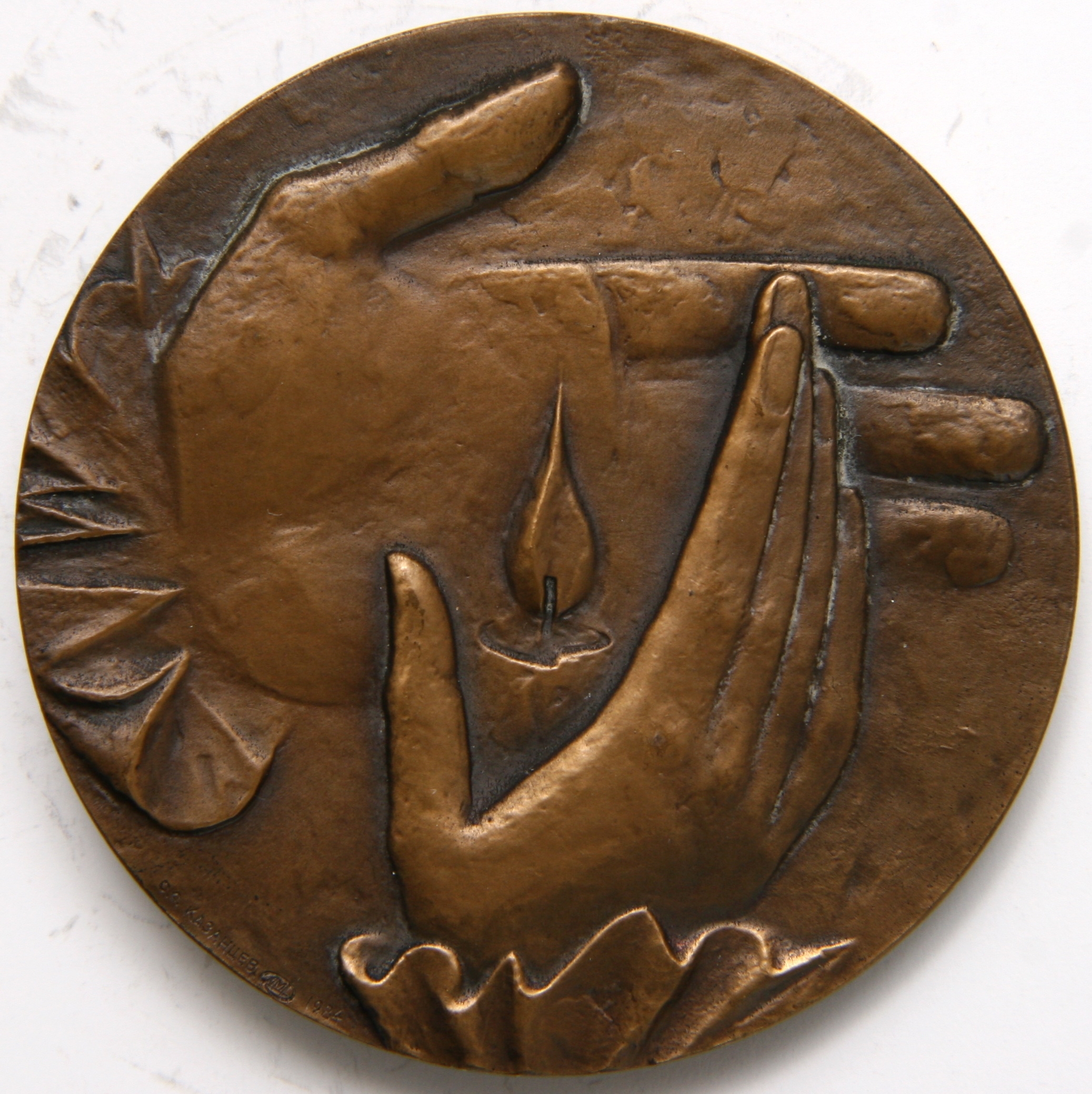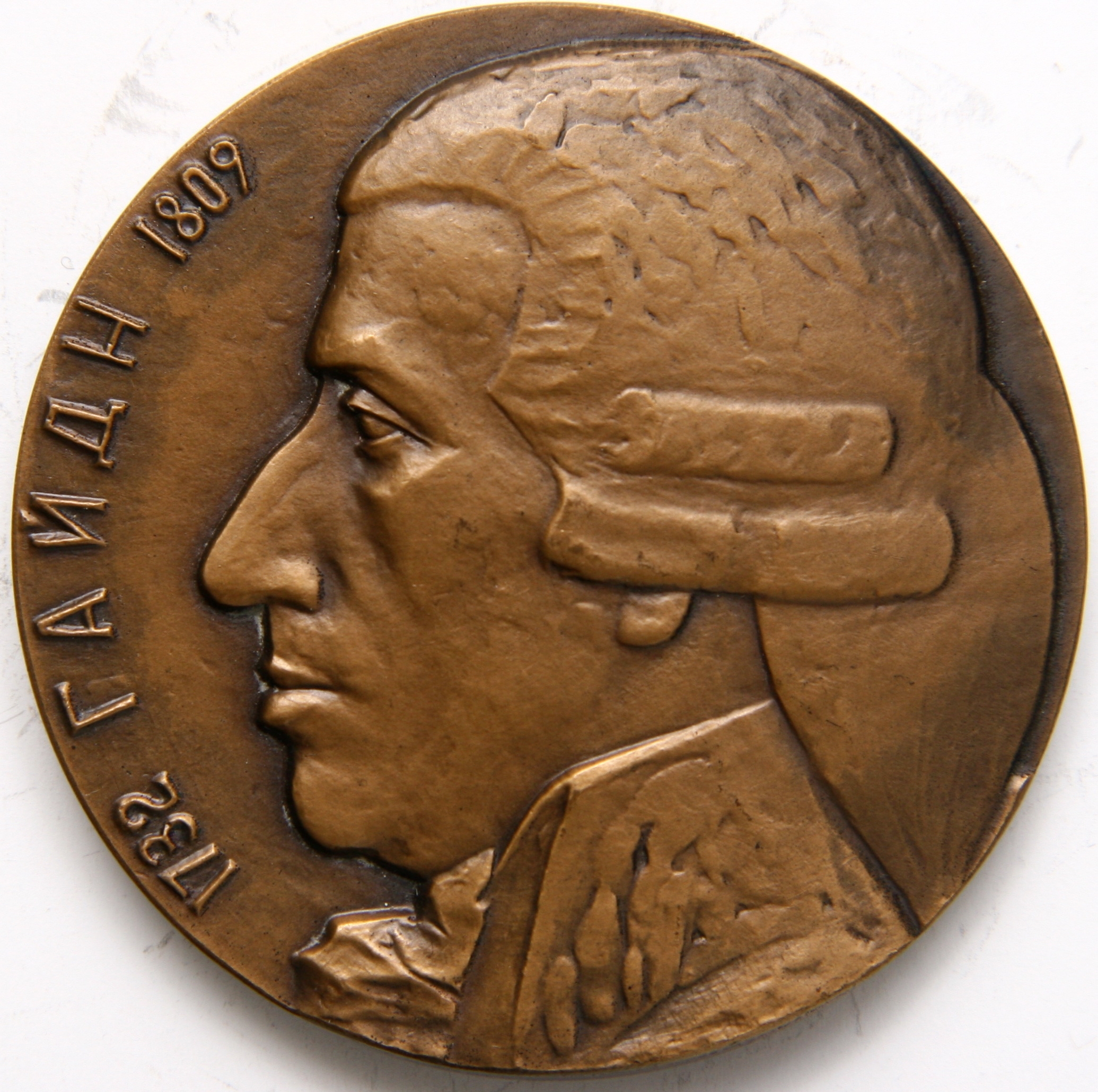 rotundă cu muchie netedă. Avers: efigia lui Joseph Haydn, în profil stg, la margine drp - inscripții. Revers: o lumină aprinsă protejată de 2 mîini; margine jos - numele autorului.