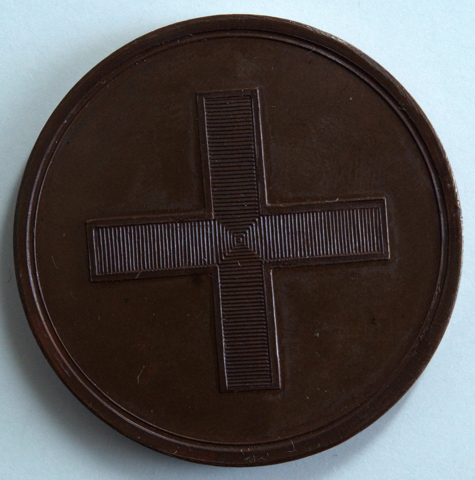 Medalie rotundă cu muchie netedă. Avers: bustul împăratului Pavel I, în profil drp, cu păr adunat la spate, poartă redingotă cu decoraţii, margine - legenda şi semnătura meşterului medalier. Revers: cruce cu 4 braţe.