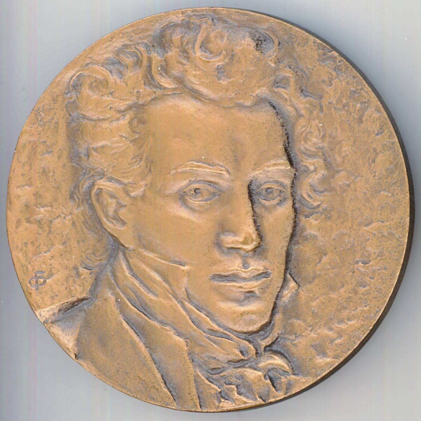 rotundă cu muchie netedă. Avers: efigia lui Kiprenskii, 3/4 drp. Revers: inscripții în 3 rînduri, conturate de cadru pătrat.