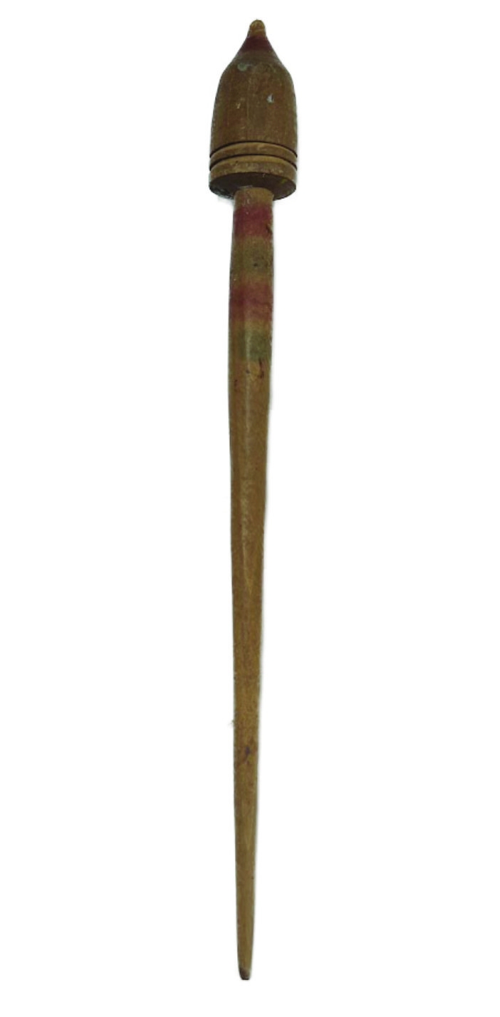 Fus pentru torsul fibrelor, de formă alungită, conică, cu un capăt ascuțit și un cilindru din lemn la bază pentru rotația uniformă. Obiecte moștenite de la părinți, din zestrea mamei (satul Gradiște).