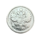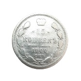 AVERS: În centru, stema mică a Imperiului Rus – acvila bicefală cu sceptru și glob crucifer în gheare, încoronată cu trei coroane; pe pieptul acvilei, stema Moscovei – Sfântul Gheorghe, Purtătorul de Biruință, străpungând balaurul cu sulița, înconjurat de lanțul Ordinului Sfântul Andrei cel Întâi Chemat; sub labele acvilei, inițialele meșterului monetar: Ф / З; câmp monetar mărginit de un cerc zimțat. REVERS: În partea de sus, coroană imperială și valoarea nominală în două rânduri: 15 / КОПѢЕКЪ; în partea de jos, anul de emitere și atelierul monetar: 1900 / С.П.Б.; circular, două ramuri stilizate legate cu o panglică; câmp monetar mărginit de un cerc zimțat. Muchie: Zimțată.