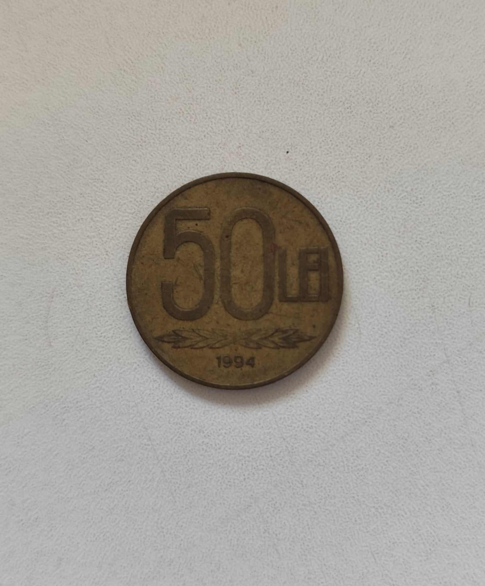 Pe avers se află valoarea nominală a monedei, "50 LEI", scrisă cu cifre și litere mari. Sub această valoare este gravat anul emiterii, "1994", iar sub an se află o ramură stilizată.
