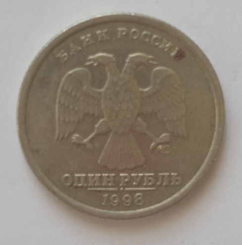 Reversul monedei înfățișează emblema Băncii Rusiei în mijloc - un vultur bicefal cu aripile coborâte; deasupra emblemei, într-un semicerc de-a lungul marginii, se află inscripția „BANKA RUSSIEI” ("БАНК РОССИИ") , iar dedesubt, cu aceeași dimensiune a fontului, dar pe orizontală, se află valoarea nominală - „O RUBLĂ” ("ОДИН РУБЛЬ"). În partea de jos a câmpului monedei se află anul băturii - „1998” - separat de partea superioară a modelului prin două linii orizontale care se subțiază spre margine, separate printr-un punct.