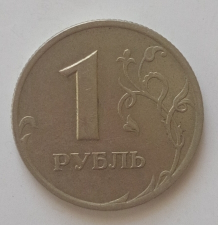 Moneda de formă circulară, muchia cu ondulații, valoarea nominală de 1 rublă rusești.