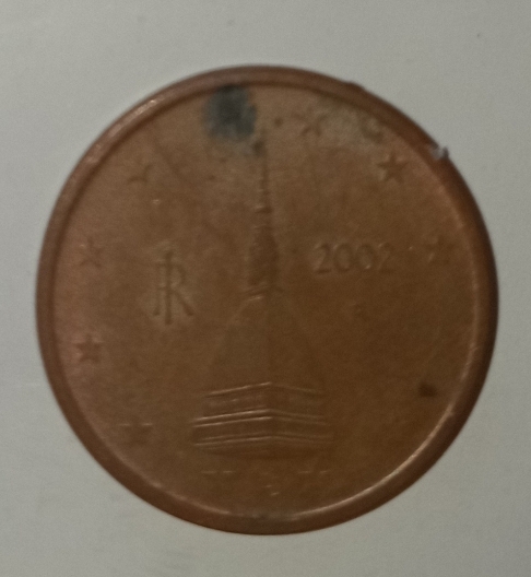 Reversul monedei prezintă Turnul Mole Antonelliana din Torino. Moneda poartă, de asemenea, simbolurile Republicii Italiene („IR”) în partea stângă a monedei, Monetăriei Italiene (un „R” mic), în partea dreaptă și semnătura artistei, Luciana De Simoni (litere stilizate LDS), în partea de jos. Pe circulară la marginea monedei stele cu 5 colțuri.