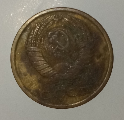 Pe aversul monedei sunt inscripționate valoarea nominală ,,3”, iar sub el scrie copeici (КОПЕЕК). Sub valoare este anul de emisiune: 1982. Toate aceste elemente sunt înconjurate de două spice de grâu.