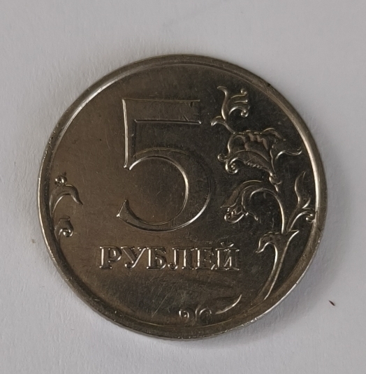 Moneda de formă circulară cu muchia a câte 60 de ondulații, împărțite în 12 secțiuni egale, alternând cu 12 secțiuni netede, valoarea nominală de 5 ruble rusești.
