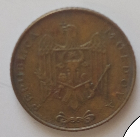 Avers: este înfățișată stema Republicii Moldova (un vultur cu aripile coborâte, ținând în cioc o cruce latină, o ramură de laur și un sceptru în gheare, un scut cu cap de taur pe piept), o fundă în partea de jos, iar inscripția „REPUBLICA MOLDOVA” pe circumferință.