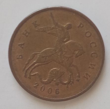 Moneda de formă circulară cu muchia netedă, valoarea nominală de 50 copeici. Aversul monedei reprezintă valoarea nominală, care este indicată de o cifră mare „50”, pe axa centrală în partea de sus. Sub valoarea nominală se află cuvântul „COPEICI” ("КОПЕЕК"), centrat pe valoarea nominală. Un ornament decorativ sub forma unei ramuri de plantă este prezentat în stânga și partea de jos a monedei. Reversul monedei înfățișează o imagine a Sfântului Gheorghe cel Victorios călare, ucigând un dragon cu o suliță. Sub copita calului se află marca monetăriei: „M” (Moscova). Lateral, pe semicerc de-a lungul marginii, se află inscripția „BANKA RUSSIEI” ("БАНК РОССИИ"), În partea de jos a câmpului monedei se află anul băturii - „2006”.