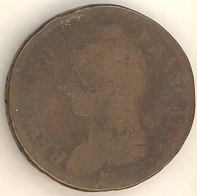 rotundă cu muchie ornamentată (romburi). Avers: portret de femeie în bonetă frigiană, în profil stg; în jurul valorii - inscripții. Revers: la centru într-o cunună vegetală e legenda dispusă în 4 rînduri.