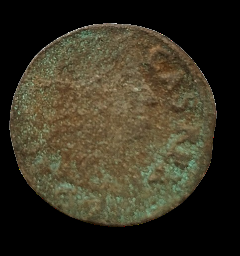 Este o monedă din cupru . Pe averso este portretul lui Ioan Cazimir al II-lea Vasa, rege al Poloniei, Mare Duce de Lituania și rege al Suediei (1649 - 1668). Pe reverso este călăreț cu sabia în mână pe un cal în mișcare. Găsită întâmplător în timpul prelucrării pământului în anul 2010.