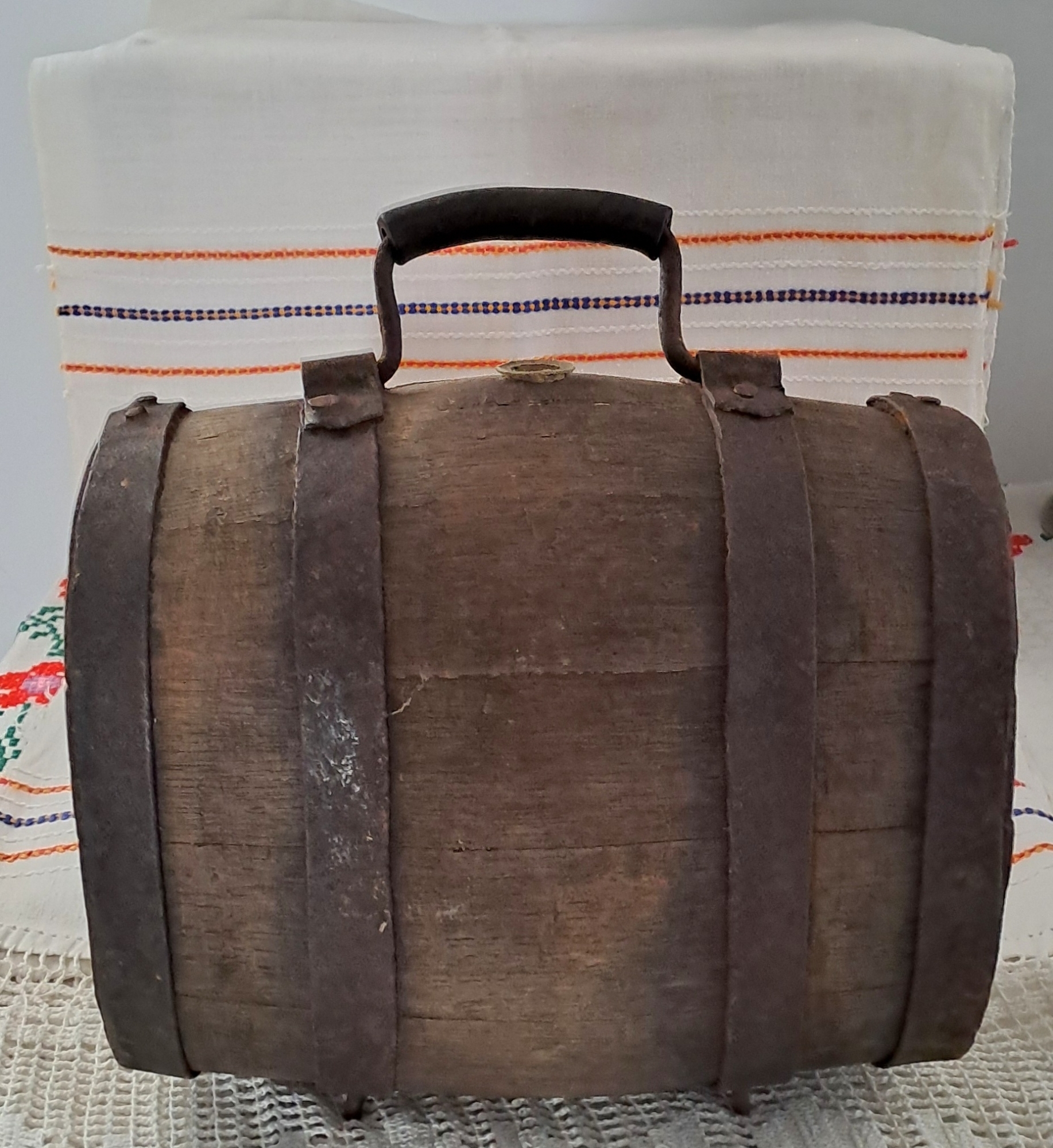 Butoieș confecționat din lemn, volum 5 litri. Fundurile sânt ovale, are 4 cercuri metalice. În partea de deasupra cercul 2 și 3 este unit cu o toartă în formă de panglică ondulată. În partea de jos cercul 2 și 3 au cîte 2 piciorușe metalice mici, pentru fixarea butoiașului.