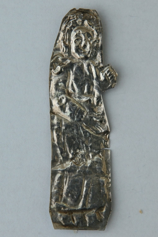 Obiectul votiv reprezintă o foaie de argint subțire, pe care s-a imprimat imaginea unei femei, în semi-profil spre dreapta. Are ochii deschişi, mana stângă strânsă în pumn, cea dreapta coborâtă în jos. Veşmintele lungi, cu decor perlat la poale și prinse la mijloc ajung până la încălţămintea ascuțită la bot. Este semnată cu inițialele „С.С.” (SS). Obiectele votive ale gravorului Samokhvalov S. se păstrează în Muzeul de Istorie de Stat din Moscova.