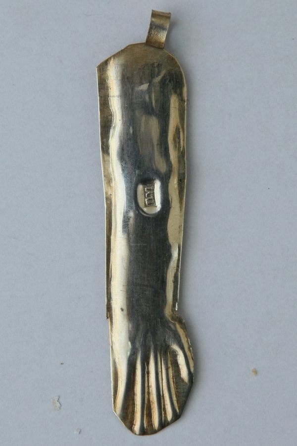 Obiectul votiv reprezintă o foaie de argint pe care s-a imprimat imaginea mâinii drepte, până la umăr. Obiectul are și inel de prindere. Este semnat cu inițialele „П,М.” (PM). Obiectele votive ale acestui gravor se păstrează în Muzeul de Istorie de Stat din Moscova.