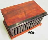 Caseta constă din: platforma (suportul), lădița și capacul. Platforma e pe patru piciorușe. Lădița imită un raft de cărți
