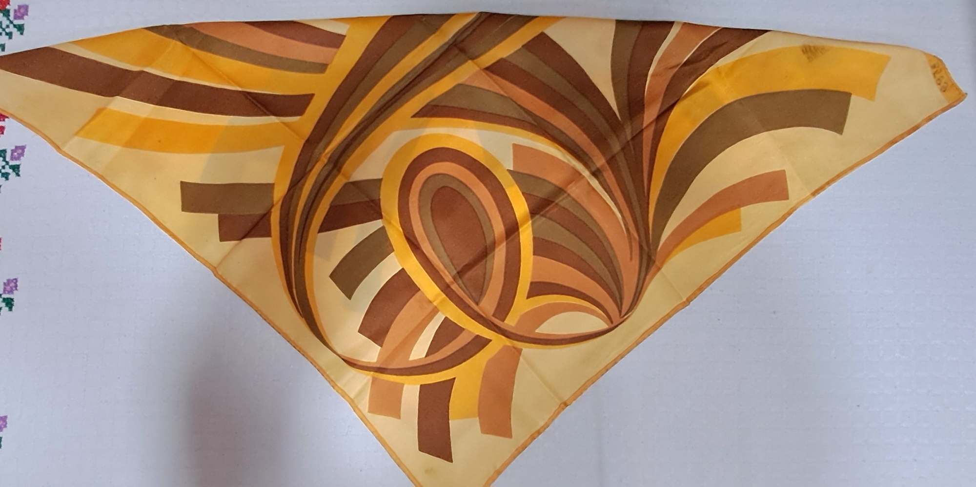 Batic tradițional de formă patrată, țesut din fir de mătase cu ornament stilizat pe toată suprafața. Câmp oranj, tivit pe margini . Piesă purtată de femei ca acoperitori de cap, sau ca accesoriu vestimentar.