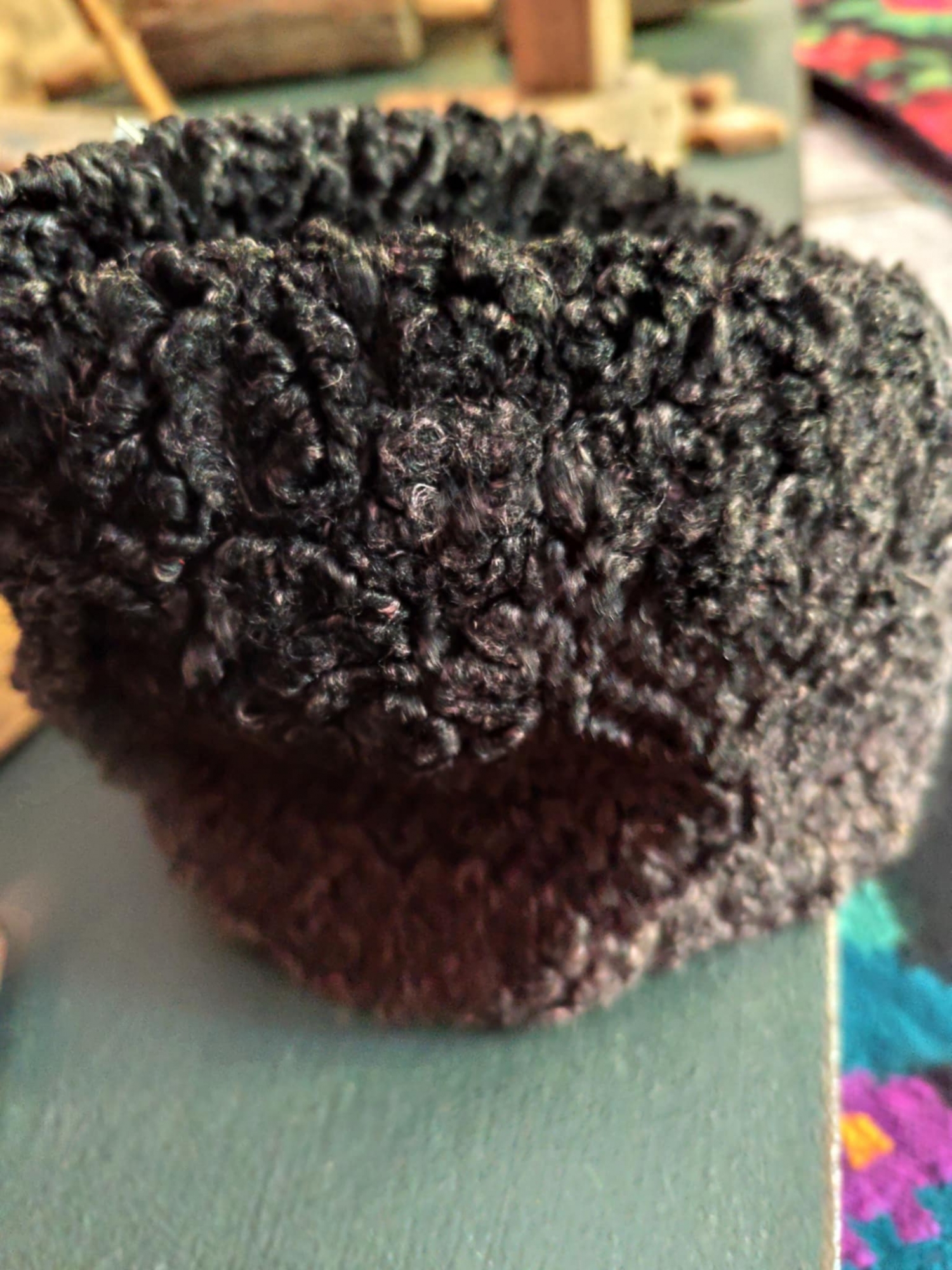 Căciulă tradițională din blană de oaie, folosită mai ales de către ciobani. Aceasta se distinge prin bucle strînse și crețe, specifice blănii și este de culoare neagră , puțin gri în partea de jos. forma căciulii este cilindrică , cu o textură bogată și voluminoasă. Această căciulă era purtată în special în perioada rece a anului.
