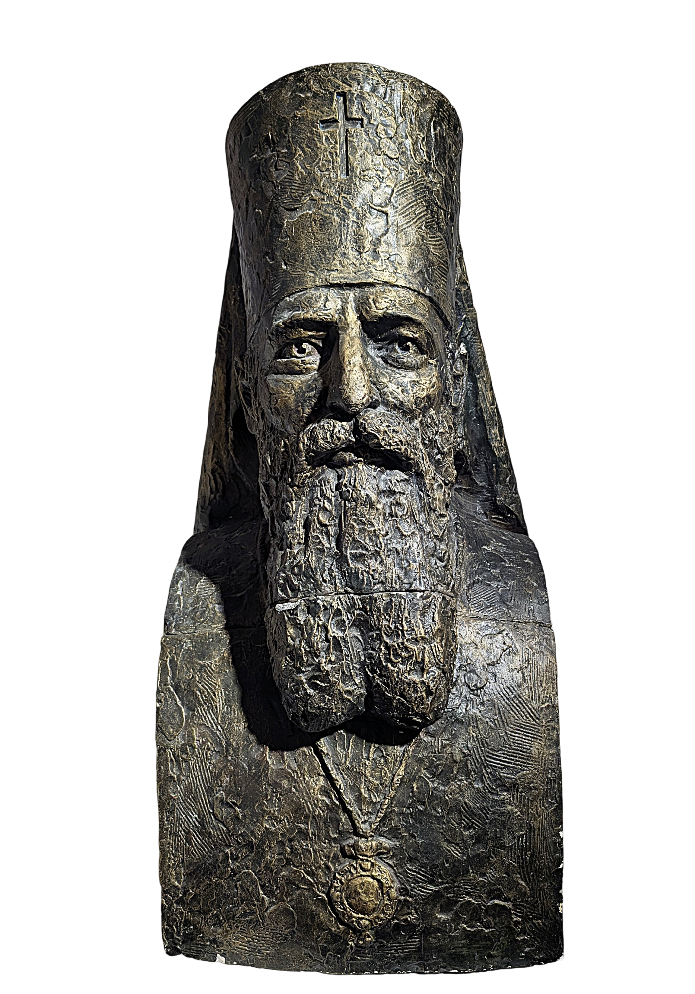 Sculptura reprezintă bustul Mitropolitului Gurie(Gheorghe) Grosu – primul Mitropolit al Basarabiei (1877–1943) – redat în straie arhierești, cu camilafcă înaltă cu o cruce în relief, barbă lungă și o privire pătrunzătoare. Lucrarea este turnată în gips de către sculptorul Ion Zderciuc.