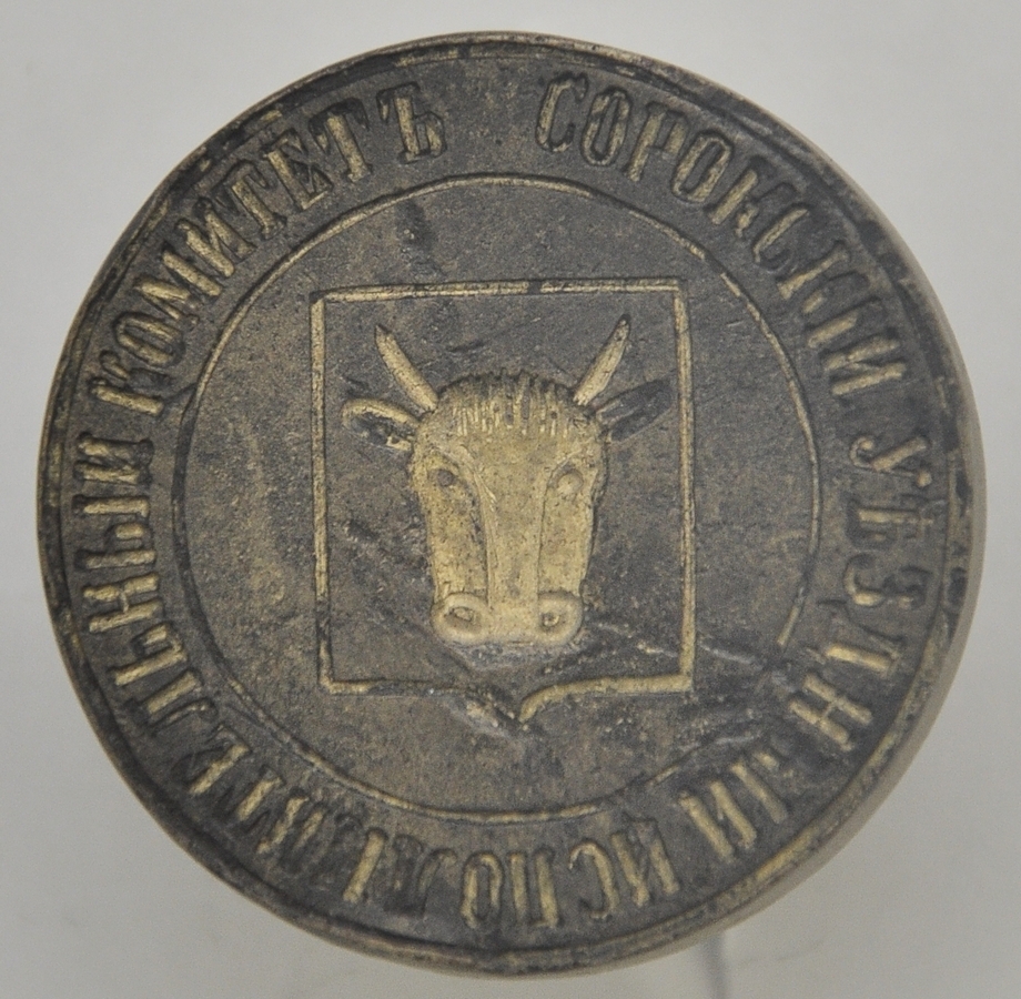 Este o matrice sigilară rotundă, în câmp imaginea unui scut francez modern, în centru - capul de bour (fără mobilele tradiționale), având coarnele slab conturnate în interior. Pe circumferință, între două cercuri liniare, de sus în jos, de la stânga la dreapta, este înscrisă legenda în limba rusă: „SOROKSKIY UEZDNYI ISPOLNITELNYI KOMITET” (СОРОКСКIЙ УЕЗДНЫЙ ИСПОЛНИТЕЛНЫЙ КОМИТЕТЪ / Comitetul Executiv al Ținutului Soroca). Semnul de invocație lipsește.