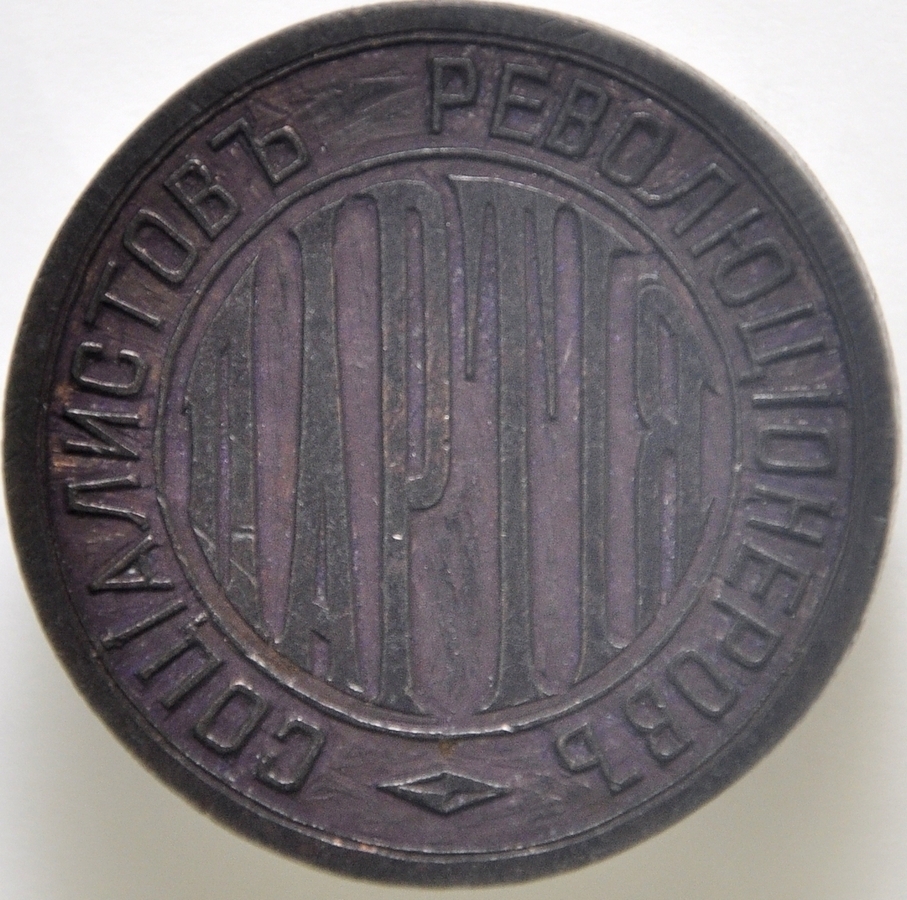 Matrice sigilară rotundă fără emblemă. În centrul matricei sigilare în locul destinat pentru emblemă, s-a înscris o parte din legendă „PARTIA” (ПАРТИЯ / Partidul), pe cerc, în exergă, de jos în sus şi de stânga la dreapta citim: „SOTSIALISTOV REVOLIUTSIONEROV” (СОЦИАЛИСТОВ РЕВОЛЮЦИНЕРОВ / Socialiștilor Revoluționari). Semnul de invocație – un romb culcat.